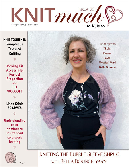 In KNITmuch Issue 25, texture takes centre stage! Discover the luscious linen stitch, explore Bella Bounce and Thula yarns, and learn how needle changes add dimension to the Bubble Sleeve Shrug. Dive into customized mods for the Lace Tipped Cardigan, and master slipped-stitch colorwork in the Holland Cowl with Mystical Marl yarn. From float catching to blocking, every technique is explained. Plus, a thoughtful feature on fit helps you create wearable pieces with confidence. Whether you're after stitch drama or subtle elegance, this issue is packed with practical tips, inspiring yarns, and cozy projects to carry you into cooler months.